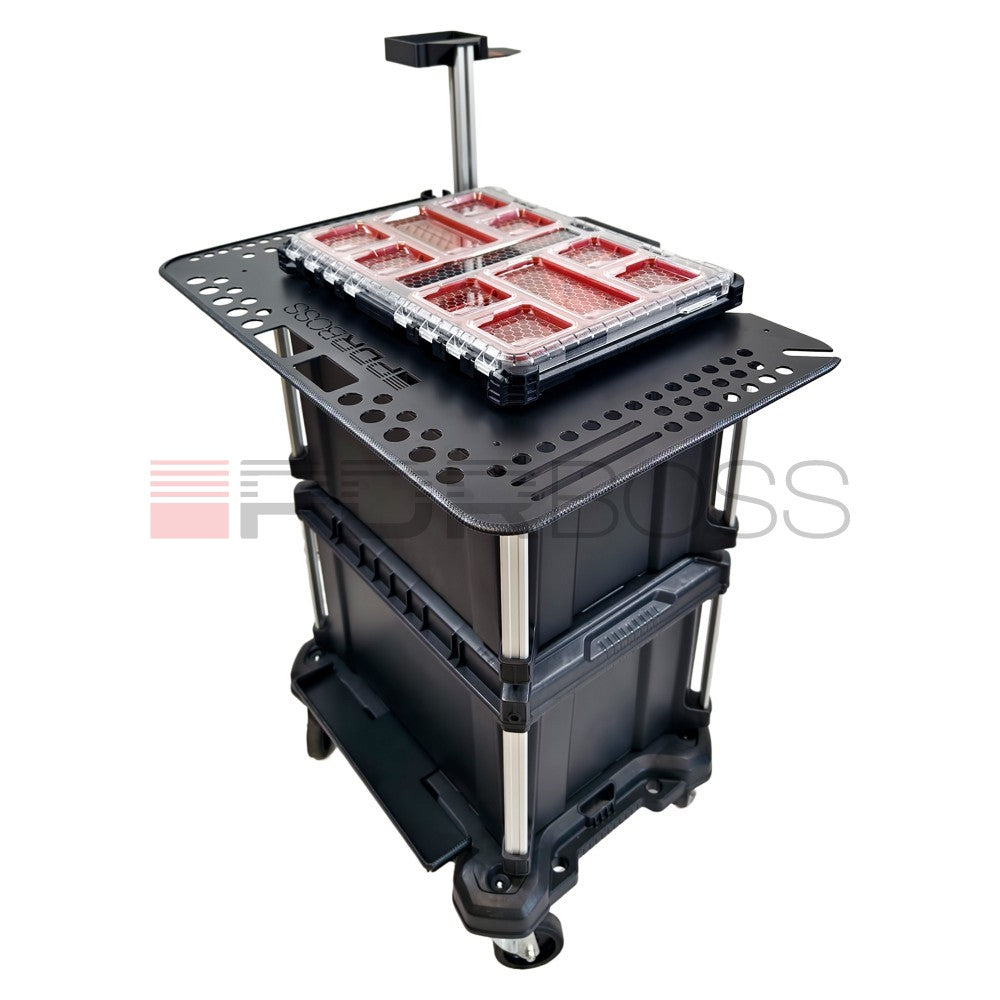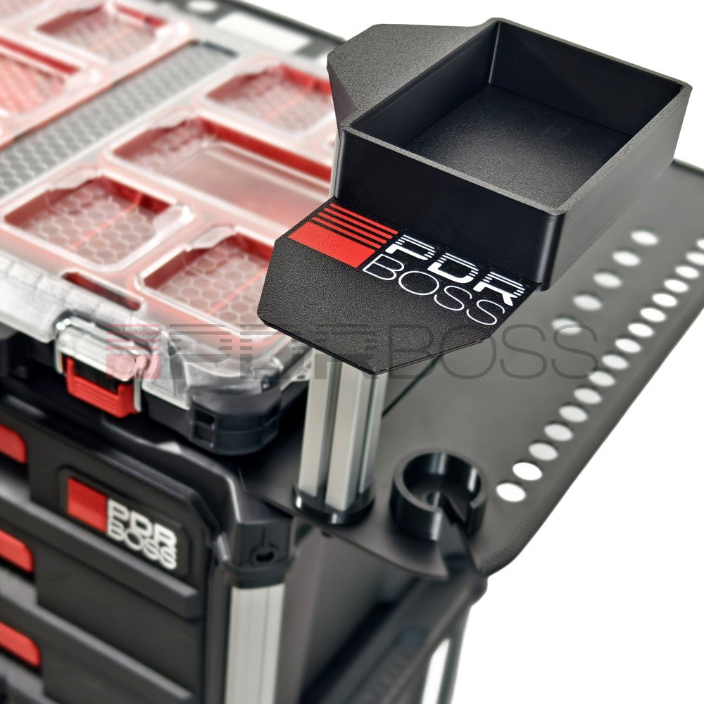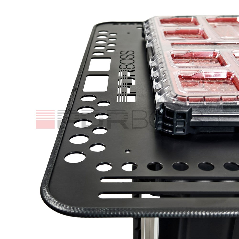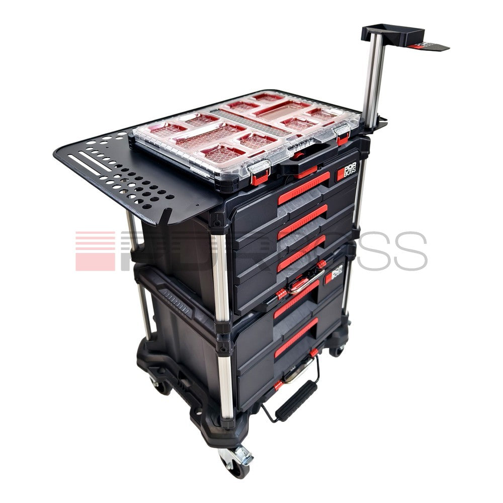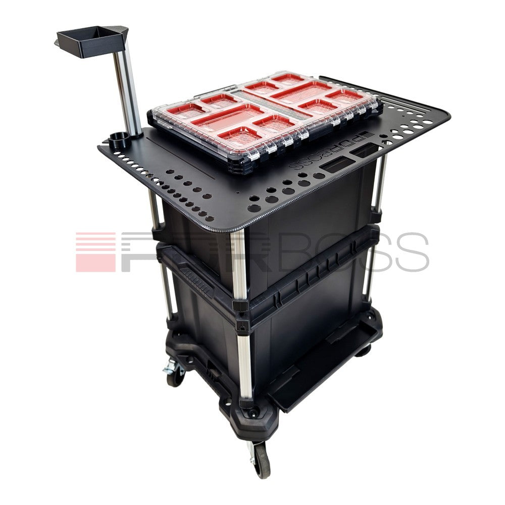 Stolek PDR BOSS zároveň slouží jako základ pro naši nástavbu, která se skládá z organizéru a držáku na tavnou pistoli.