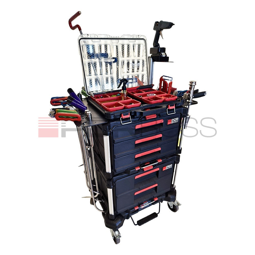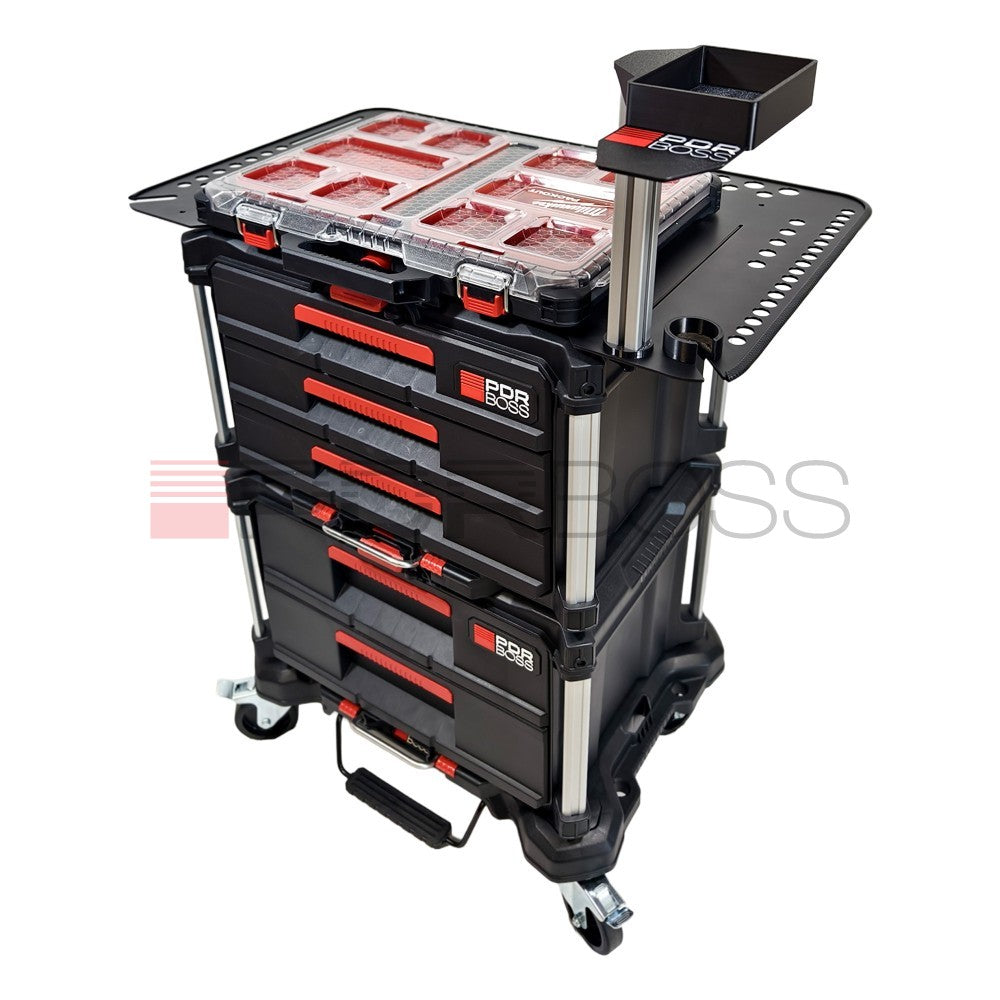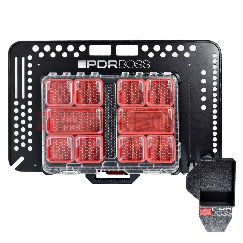 Pojízdný stůl PDR BOSS je navržen tak, abyste do něj pohodlně uložili veškeré potřebné vybavení pro různé typy oprav deformací.